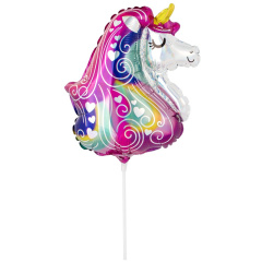 A Шар (11"/28 см) Мини-фигура, Голова, Единорог, Голография, 1 шт.