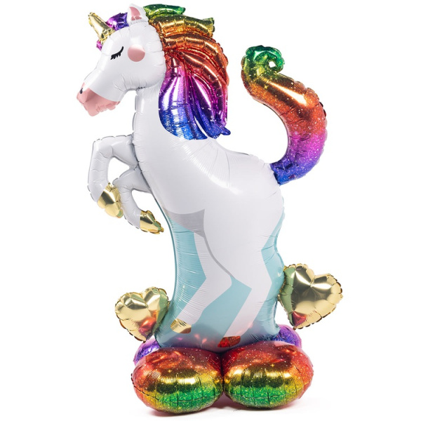 Фольгированный шар A Шар 3D (54''/137 см) Фигура на подставке, Радужный Единорог, 1 шт. в уп.