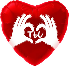 Шар (18''/46 см) Сердце, Ты (ладошки с любовью), Красный, 1 шт. в уп.