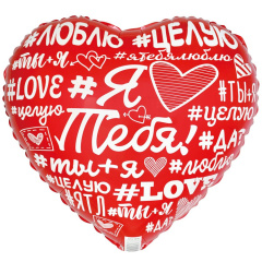 Шар (18"/46 см) Сердце, Я Люблю Тебя! Хештеги, 1 шт. в уп.