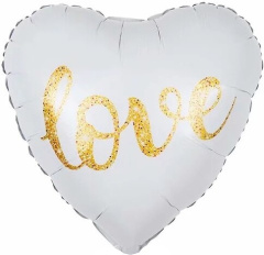 Шар (18''/46 см) Сердце, LOVE, Белый, 1 шт.