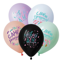 С Днем рождения, Для нее, Ассорти Пастель, 5 ст., Латексный шар