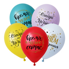 Надписи на шарах: "Время чудес сейчас", "С Днем рождения", "Следуй за мечтой".
