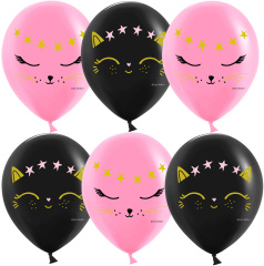Шар (12''/30 см) Волшебный котенок, Черный/Розовый, пастель, 2 ст, 25 шт.