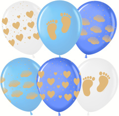 Шар (12''/30 см) Новорожденный для мальчика(сердца и облака), Ассорти, кристалл, 5 ст, 25 шт.