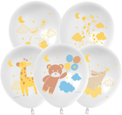 Шар (12''/30 см) Любимые зверята, Белый, пастель, 2 ст, 25 шт.