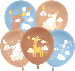 Шар (12''/30 см) Нежные зверята, Ассорти, пастель, 2 ст, 25 шт.