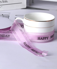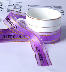 Лента декоративная (2,5 см/45 м), Happy Birthday, Сиреневый, 1 шт.