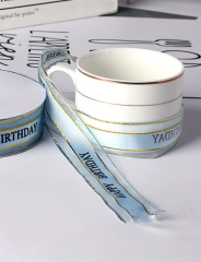 Лента декоративная (2,5 см/45 м), Happy Birthday, Голубой, 1 шт.