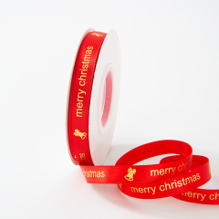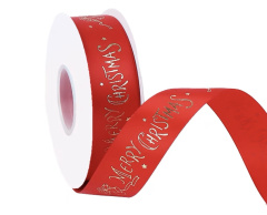 Лента атласная (2,5 см*22,85 м) Красный, Merry Christmas, 1 шт.
