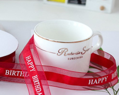 Лента декоративная (2,5 см/45 м), Happy Birthday, Красный, 1 шт.