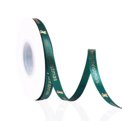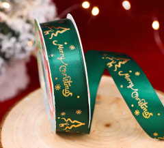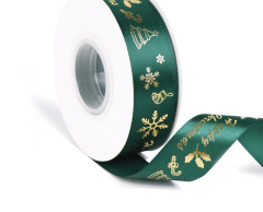 Лента атласная (2,5 см*22,85 м) Зеленый, Happy Christmas, 1 шт.