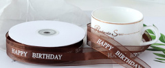 Лента декоративная (2,5 см/45 м), Happy Birthday, Коричневый, 1 шт.