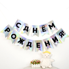 Гирлянда - буквы, с надписью "С Днем рождения!" Шампанское - декоративное украшение из плотного картона. Изящная надпись придаст особую изысканность праздничному оформлению и станет стильным украшением торжества. |