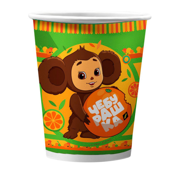 Набор бумажных стаканчиков «Чебурашка» ? стильный элемент для украшения праздничного стола и комнаты в День Рождения. На каждой тарелке изображен культовый герой советских и современных фильмов.