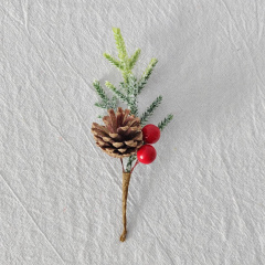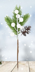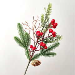 Искуственная ветка ягод с шишкой, 17,5 см, 1 шт.