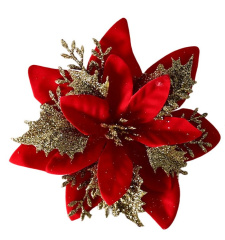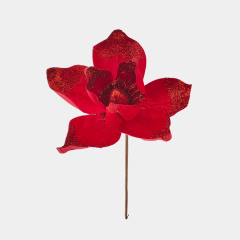 Искуственный цветок магнолии, Красный/Золото, 13 см, 1 шт.