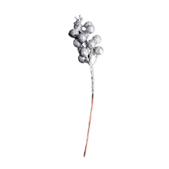 Искуственная ветка ягод, Серебро, 23 см, 1 шт.